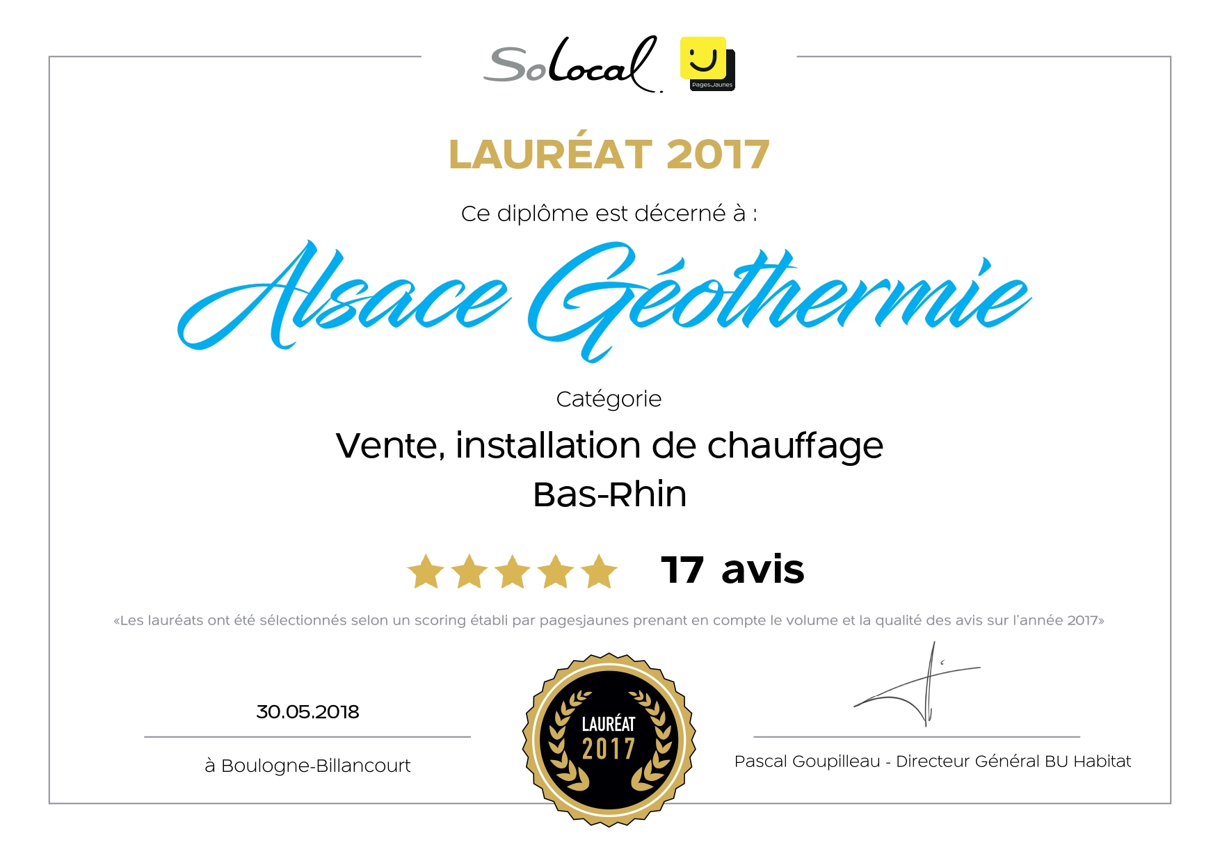 Lauréat 2017 Solocal : 17 avis, tous 5 étoiles !